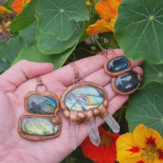 "Dos Ojos" Labrodorite and copper electroformed necklace