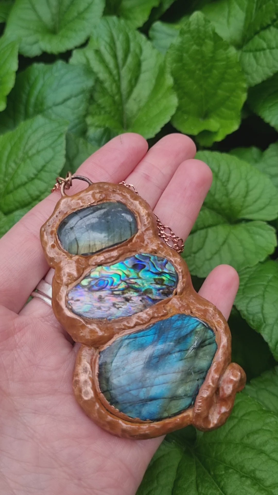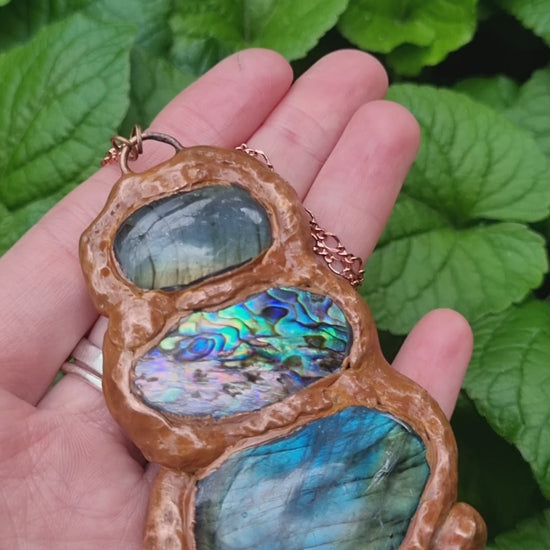 Labrodorite and Abalone shell copper electroformed necklace